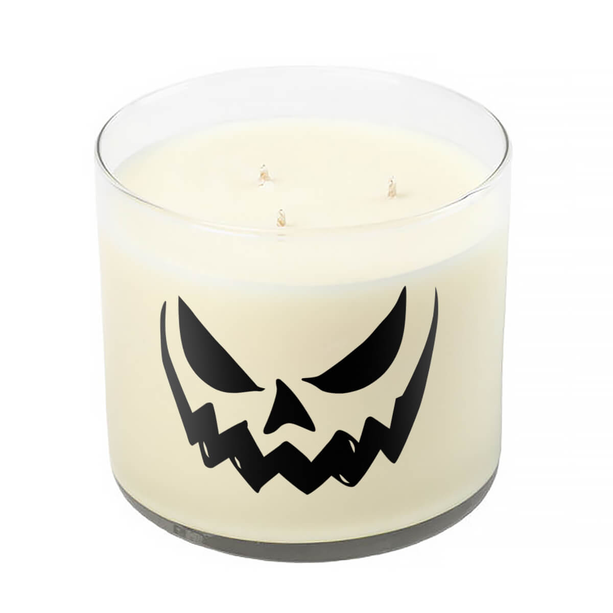 Custom Candle Co™ - 3 Wick Clear Tumbler Halloween Candle with Scary Pumpkin (Face #5)