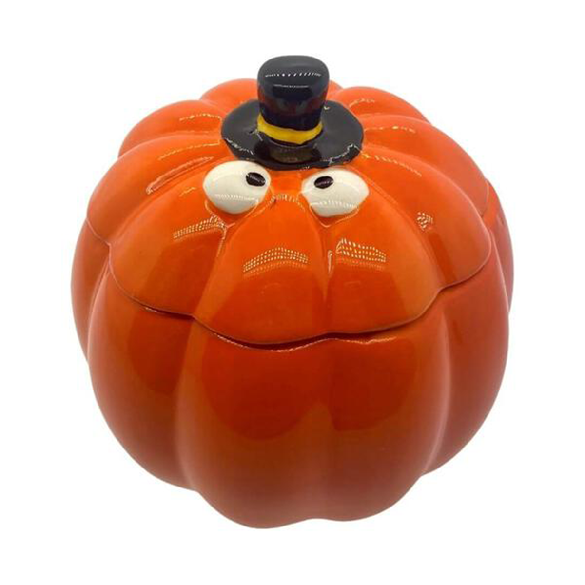 Ceramic Orange Halloween Pumpkin Candle w/ Hat Lid