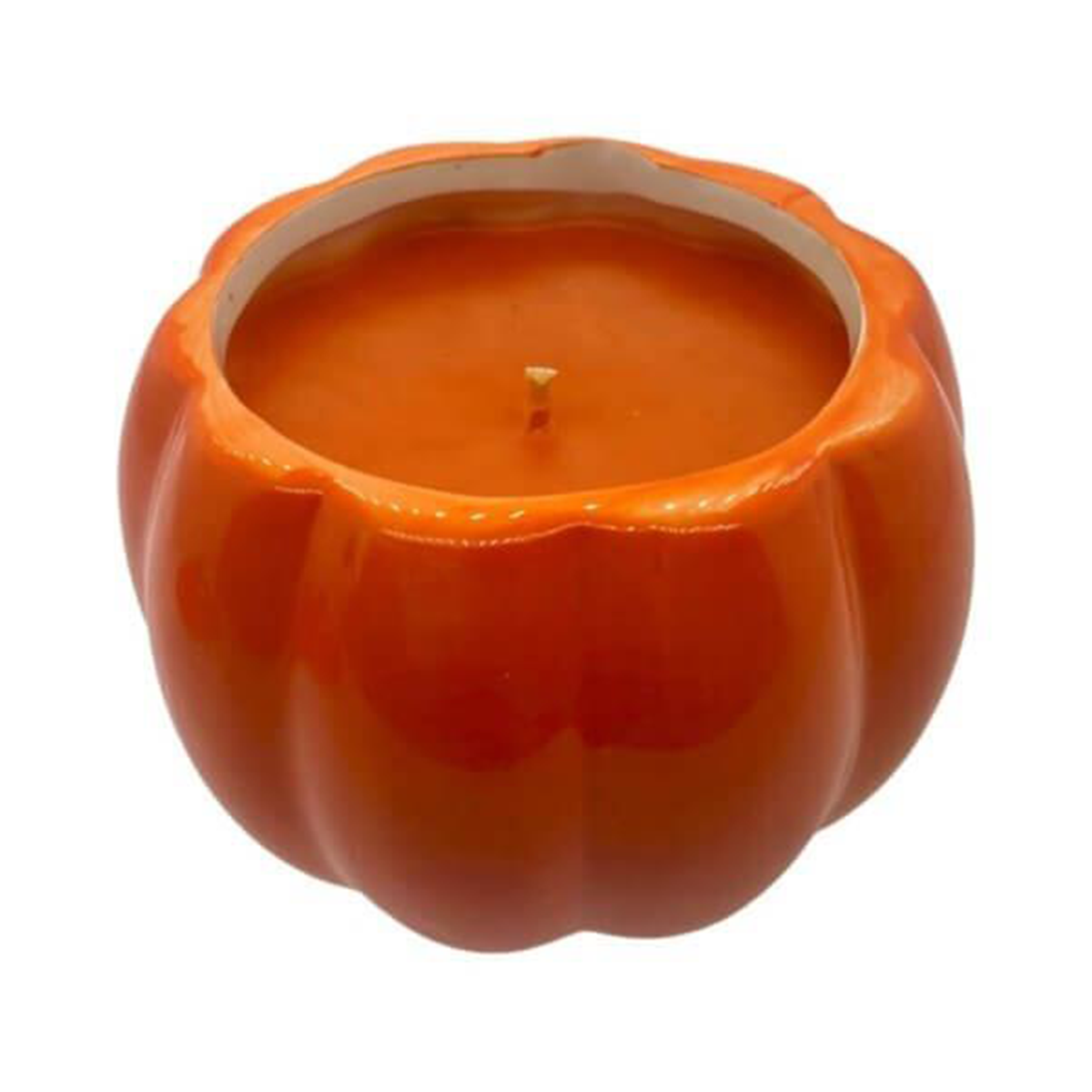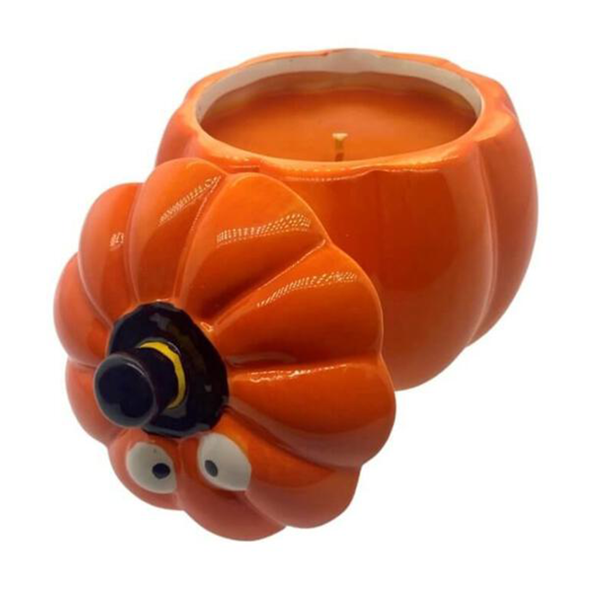 Custom Candle Co™ - Ceramic Orange Halloween Pumpkin Candle w/ Hat Lid