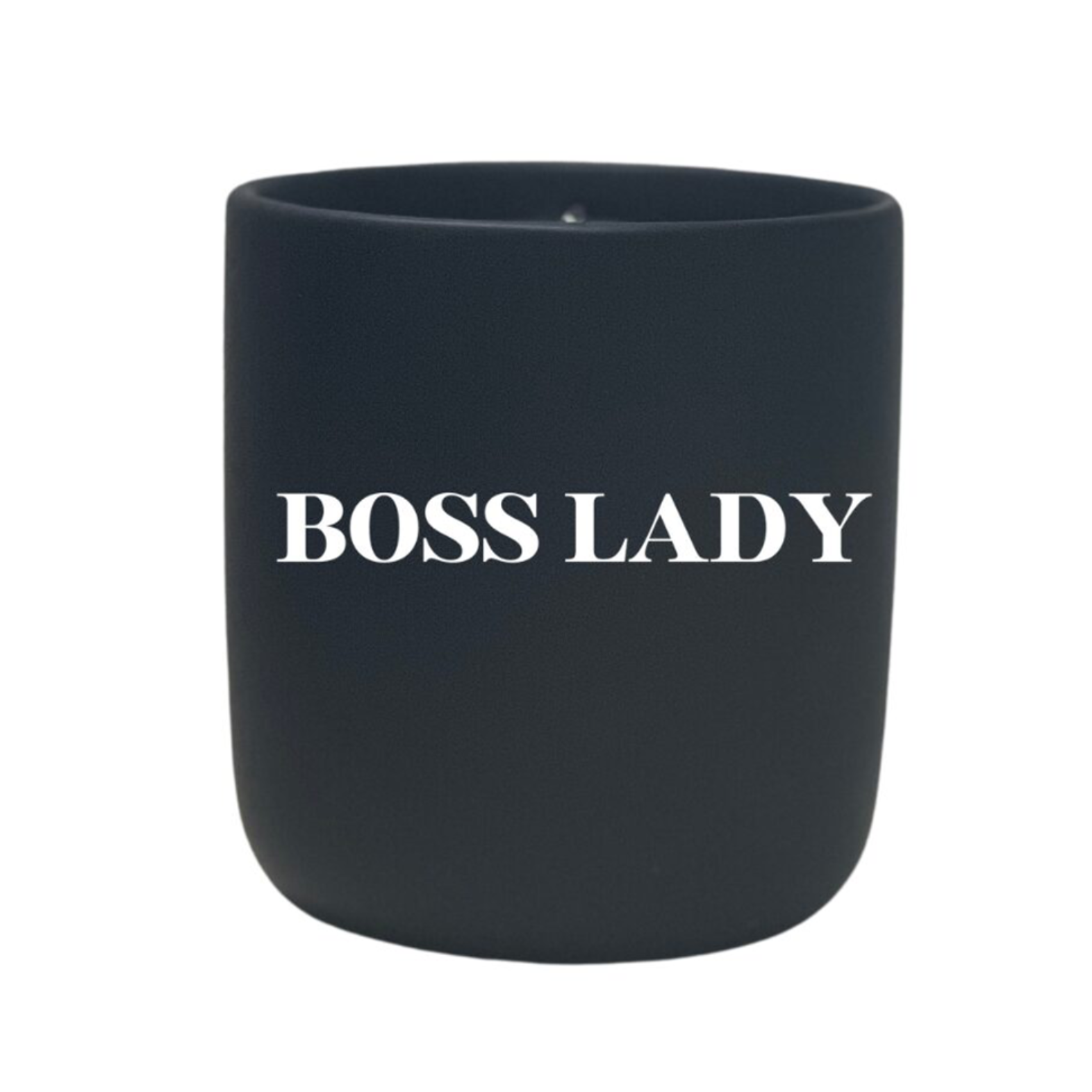 The Quoted - "Boss Lady" Candle features a black jar with "BOSS LADY" in bold white lettering, crafted from all-natural wax to empower and uplift your space.