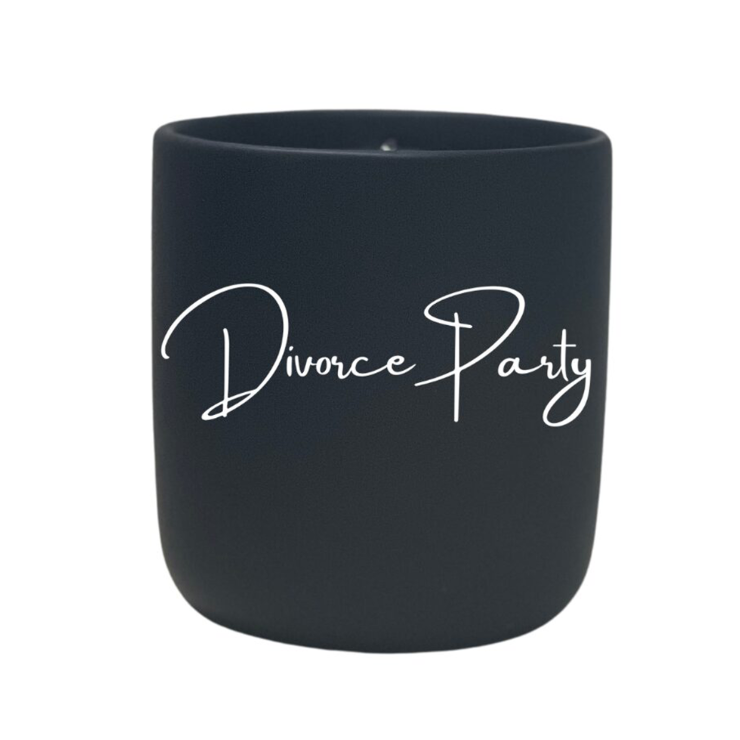 The Quoted - "Divorce Party" Candle is a black, natural wax candle with "Divorce Party" in white cursive—perfect for boldly celebrating new beginnings.