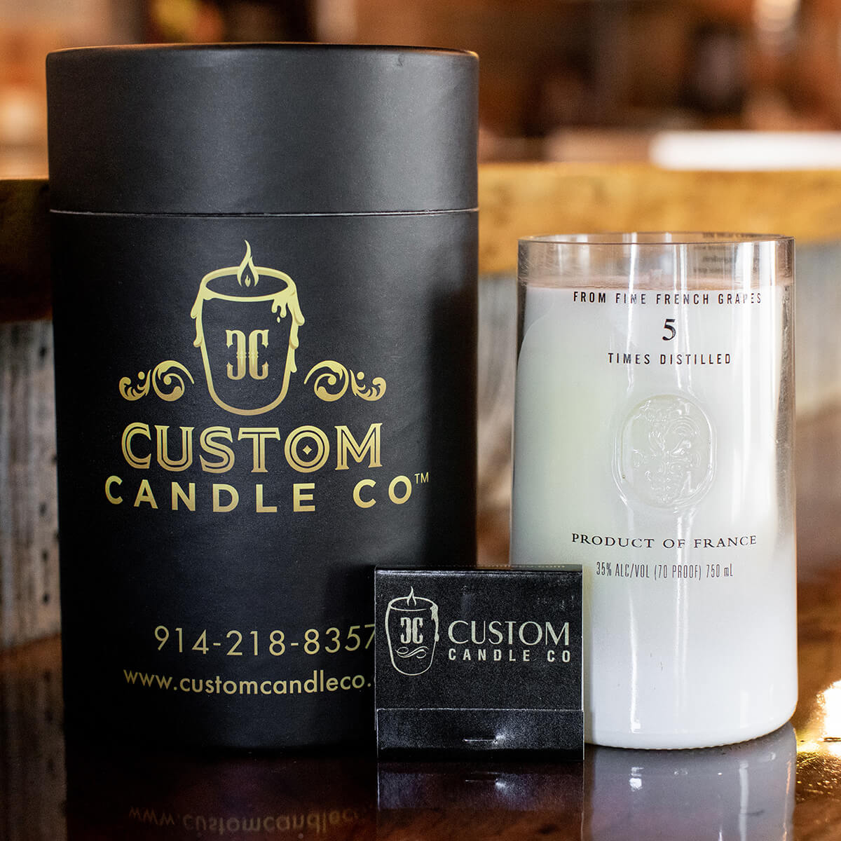 Custom Candle Co does not have any affiliation with any of the liquor, wine, champagne, or beer companies. We recycled the old, unwanted bottles saved from being thrown away and wind up in landfills.